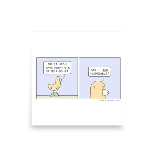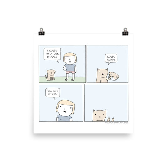 Selected comic prints from Poorly Drawn Lines, printed with care on archival, museum-grade paper. Perfect for walls, gifts, or starting oddly specific conversations.