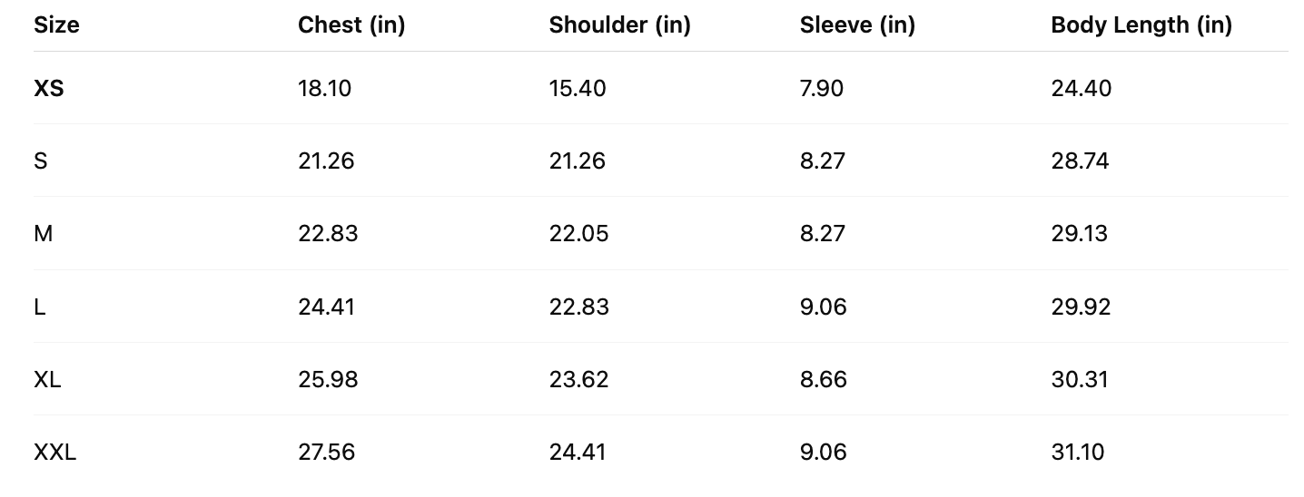 Available in sizes: XS - 2XL